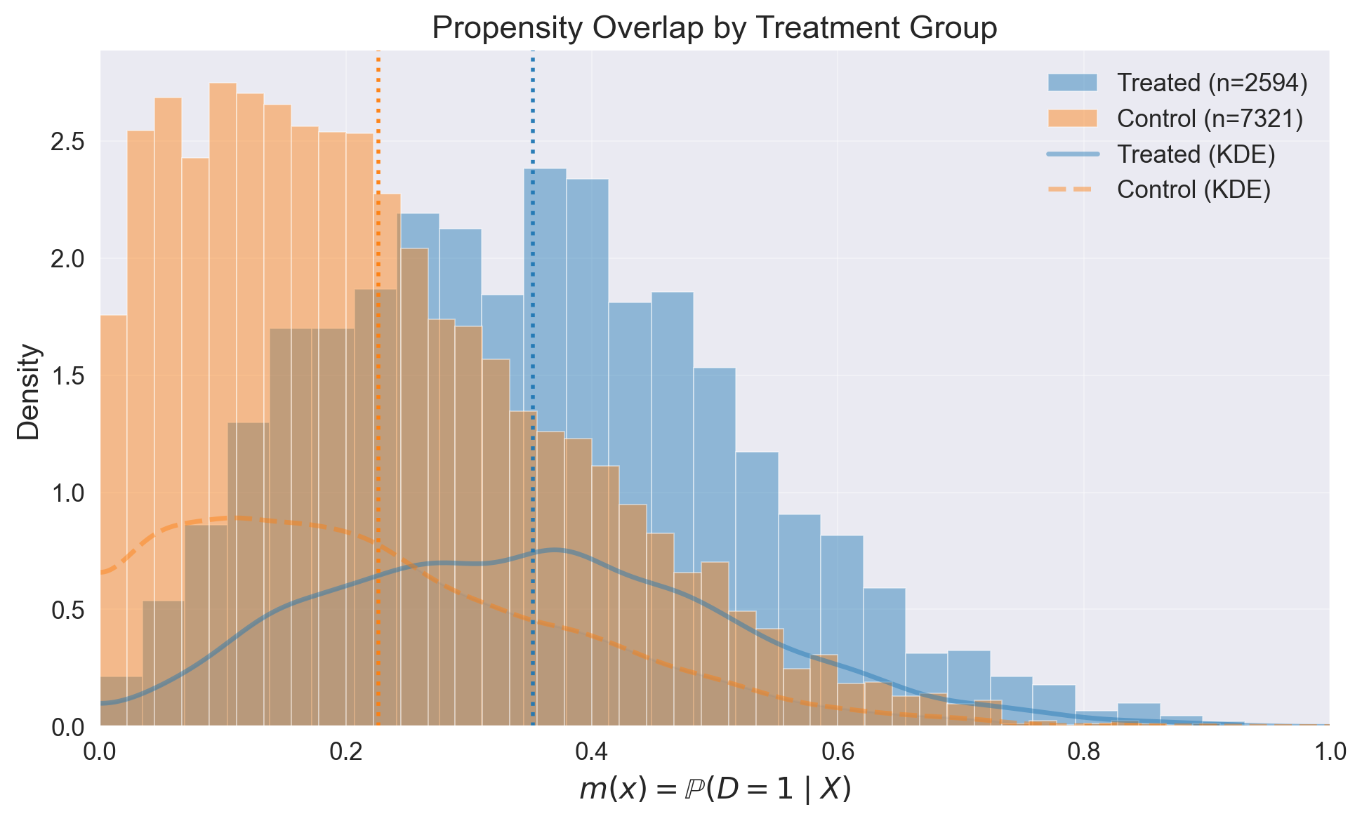 Positivity check from PropensityModel: {'bounds': (0.05, 0.95), 'share_below': 0.08371154815935451, 'share_above': 0.0, 'flag': True}