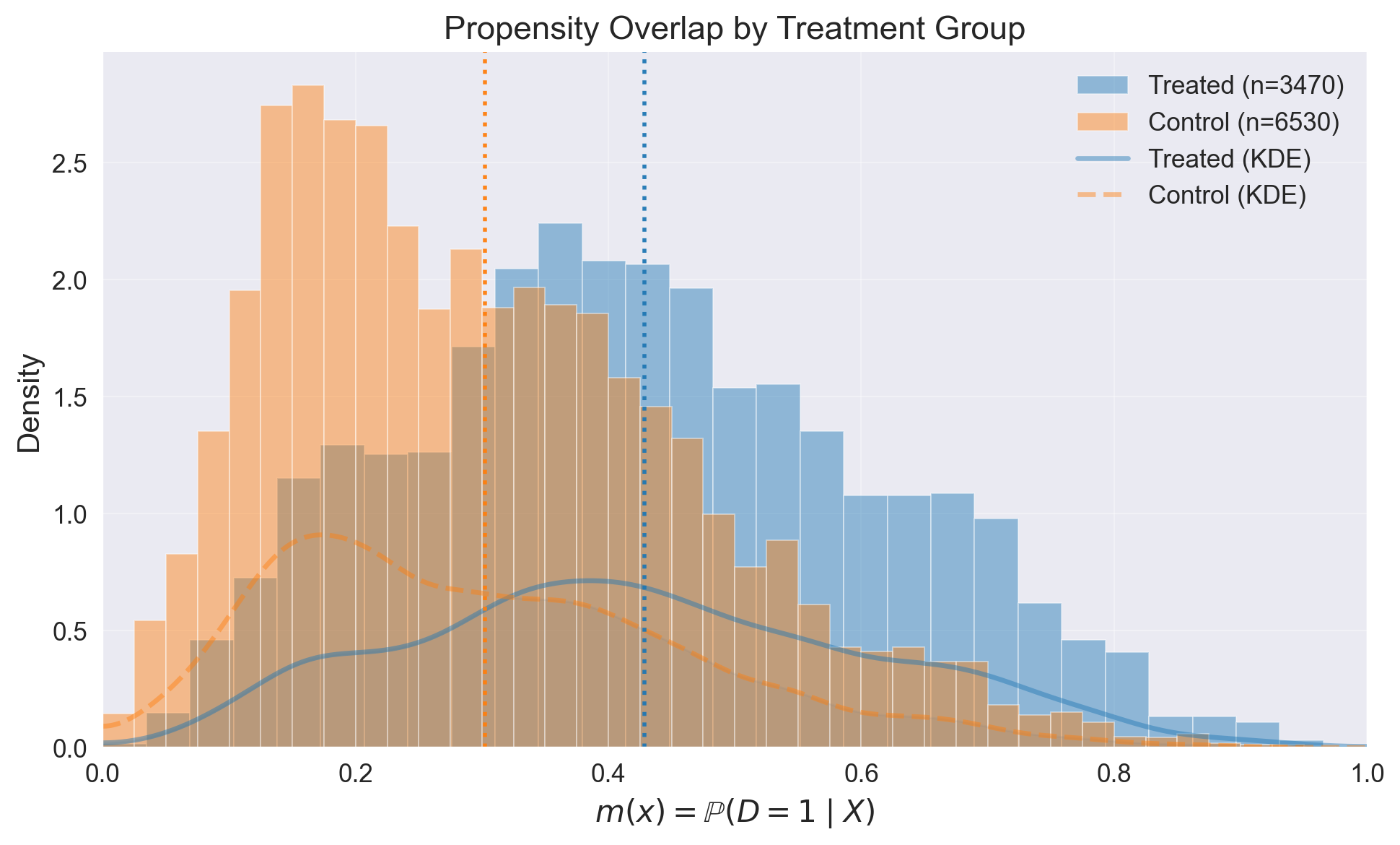 Positivity check from PropensityModel: {'bounds': (0.05, 0.95), 'share_below': 0.0121, 'share_above': 0.0004, 'flag': False}