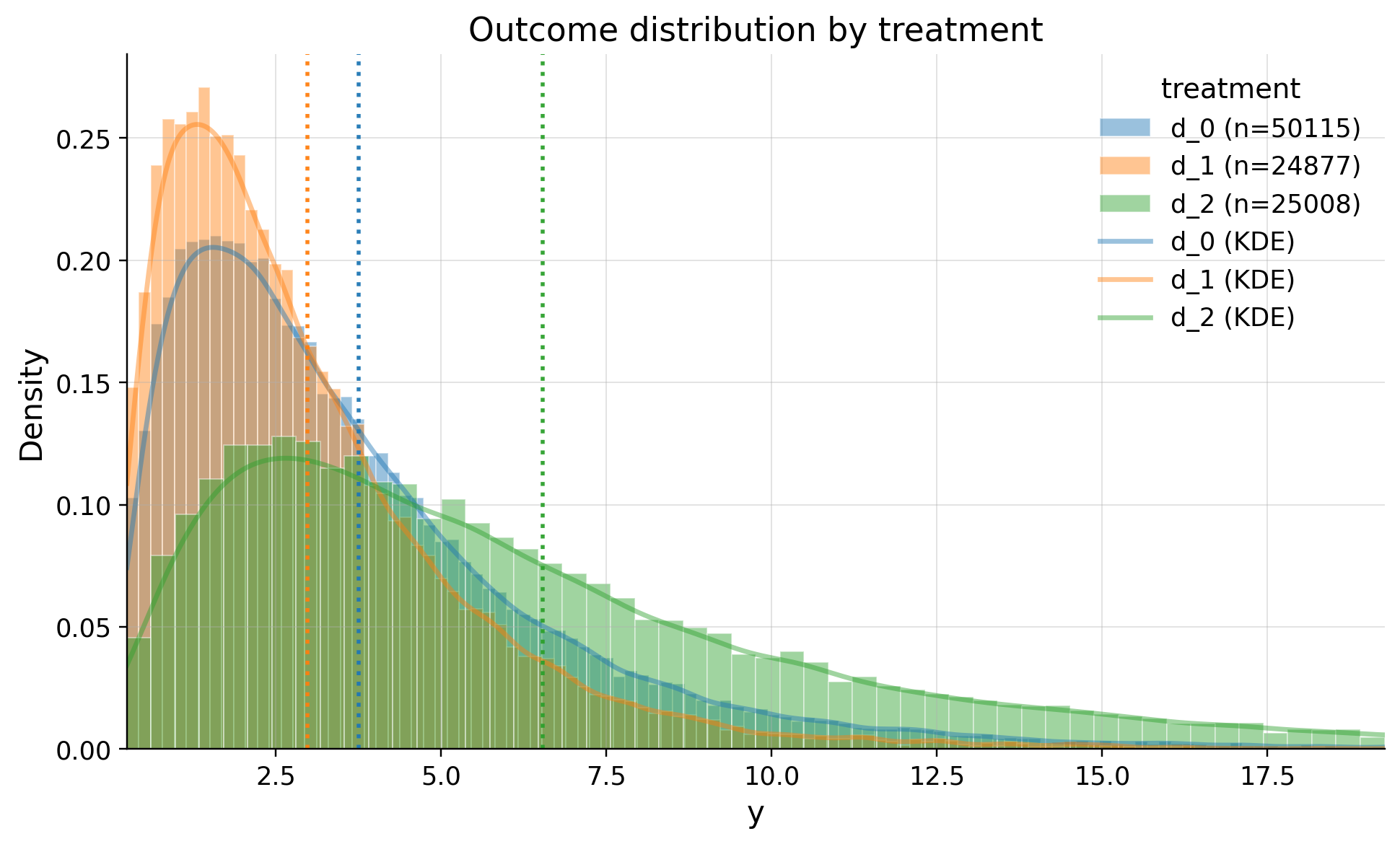 MultiCausalData(df=(100000, 12), treatment_names=['d_0', 'd_1', 'd_2'], control_treatment='d_0')outcome='y', confounders=['tenure_months', 'avg_sessions_week', 'spend_last_month', 'premium_user', 'urban_resident', 'support_tickets_q', 'discount_eligible', 'credit_utilization'], user_id=None,